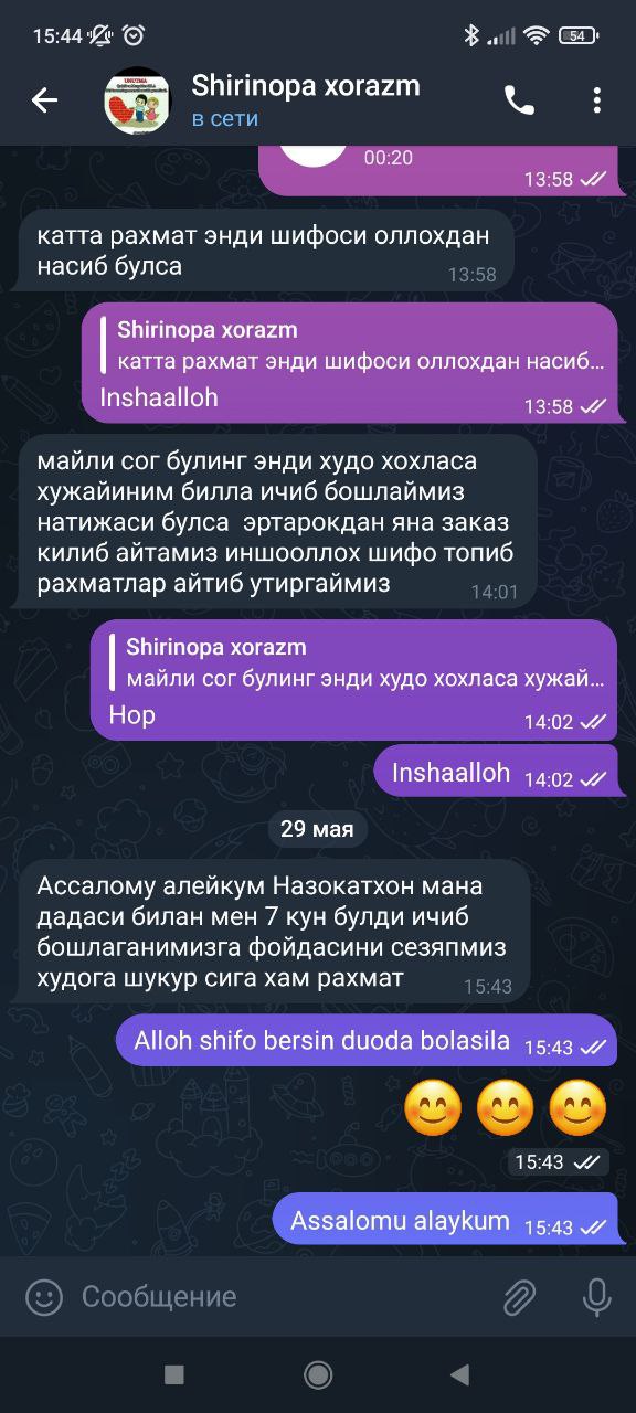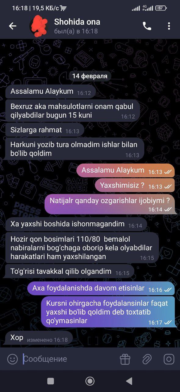 Qadimgi odatlardan tashqari, bemorlar hali ham menga, shu jumladan qon tomirlarini tozalash uchun kelishadi. So'nggi paytlarda men faqat ushbu mahsulotni tavsiya qilaman. Bu hammaga yordam beradi va juda yaxshi.